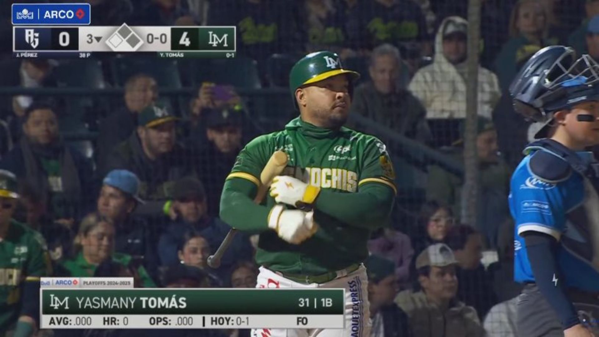 Yadiel Hernández went yard for the first time of the playoffs in four trips to the plate, while also driving in a run in Mexicali’s 9-7 victory over Jalisco. The Águilas also took a 1-0 in their postseason series and the outfielder now hits .500 after the first game of the playoffs.