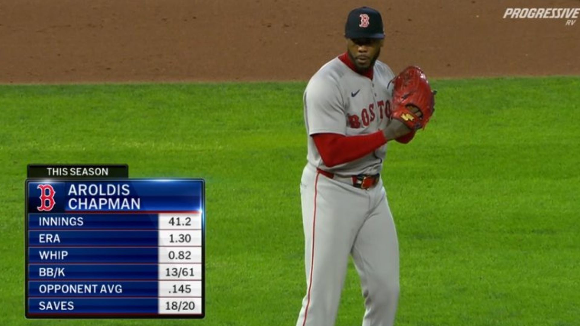 Aroldis Chapman (Red Sox): 0.1IP,0H,0ER,K (1.29)